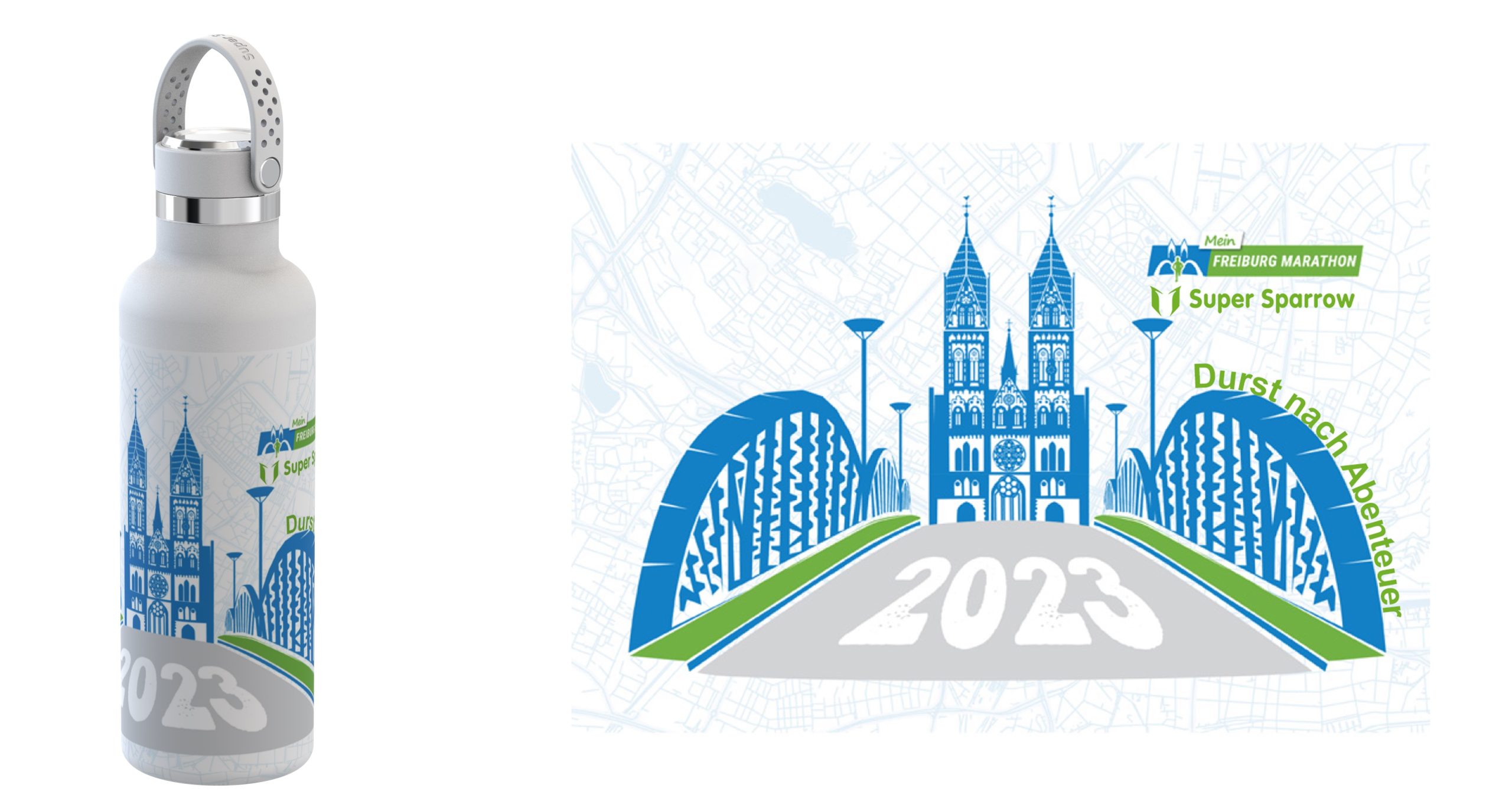 Außerdem dürft Ihr Euch über eine offizielle MEIN FREIBURG MARATHON-Flasche mit exklusivem Design freuen, welche Euch zum Kauf zur Verfügung stehen wird. Entweder Ihr bestellt diese gleich innerhalb Eurer Anmeldung zum MEIN FREIBURG MARATHON oder Ihr könnt sie am Veranstaltungswochenende am Stand von Super Sparrow erwerben.